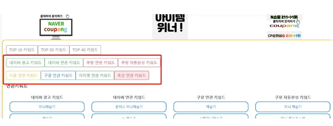 forsell最大的优点之一便是可以在短时间内查看到相关关键词,这一相关关键词也是在Coupang和Naver运营时非常重要的一个要素。