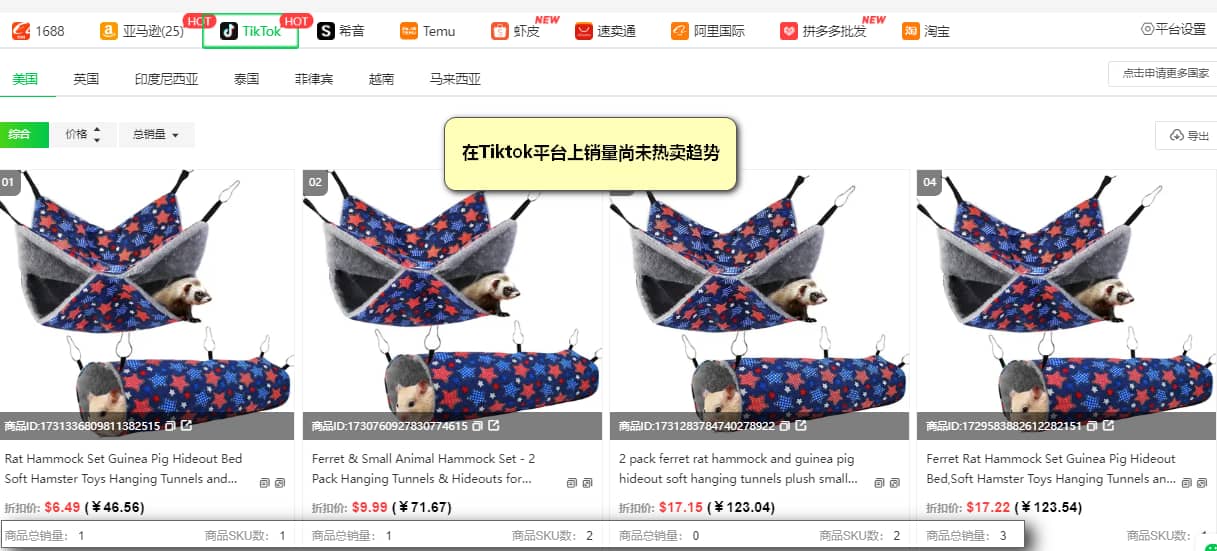 有的品在亚马逊上卖得好,但在Tiktok、Temu、shopee等主流电商平台上目前还没有多少跨境商家售卖或销量还没做起来,通过多平台布局,可针对不同区域市场调整产品组合和定价策略,既能降低对单一渠道的依赖,又能覆盖不同消费场景。