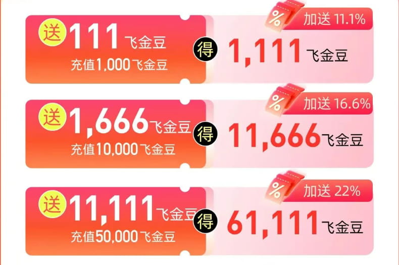 注意:周年庆期间,同一会员账号充值飞金豆上限为500,000元
