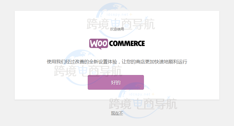 第一步:在WooCommerce插件第一次安装启用时,我们可以根据WooCommerce插件中的安装向导来更快捷地进行相关的功能设置,根据其操作步骤,点击完成设置即可。如下图所示: