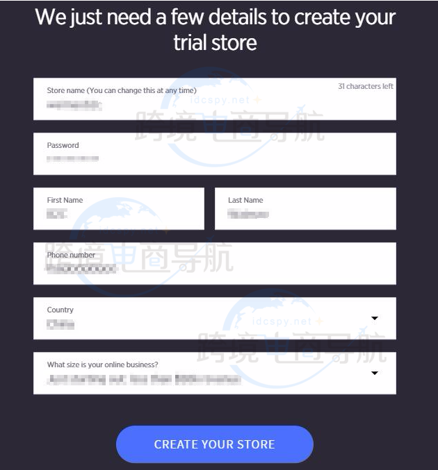 填好之后点击create your store进入下一个页面然后bigcommerce在新的对话框中会要求填写一些更加详细的注册信息: