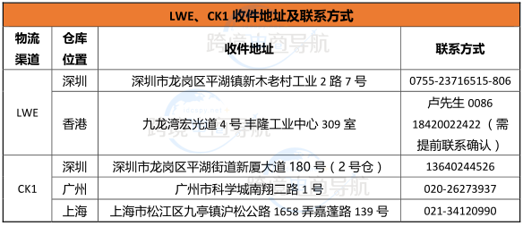 一般情况下,Shopee卖家需要将要发出的包裹寄送到 LWE 或者 CK1 仓库来完成发货,具体寄送地址和联系方式如下: