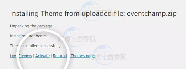 5.上载主题后,您将看到一条成功消息,如以下屏幕截图所示。单击激活按钮。