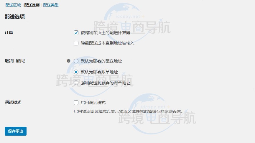 调试模式:启用物流调试模式以显示物流区域并忽略掉缓存的运费设置。