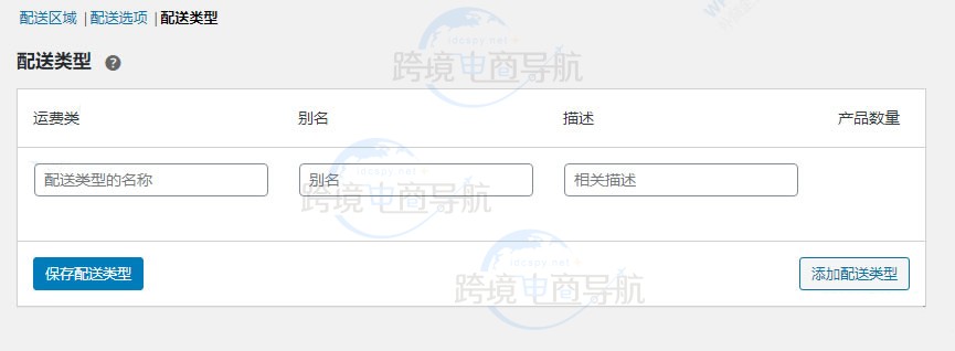 配送类型可被用于相似类型的成组产品并可被某些送货方式使用(例如一口价运费)以为不同的产品提供不同的费率。如果需要自定义扩展配送类型,在这里添加即可。