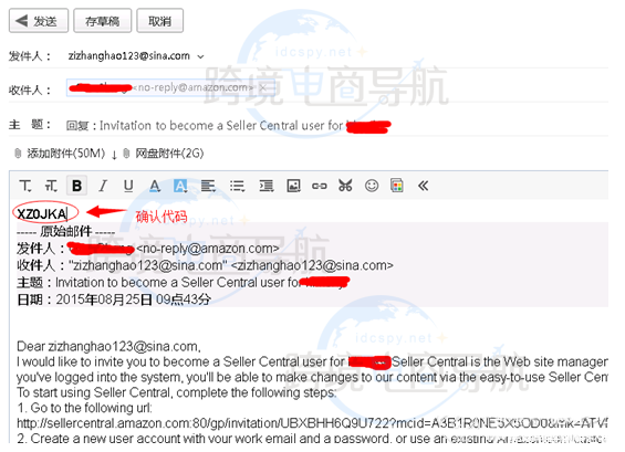 6、打开邮箱,找到刚才亚马逊发的那封邮件,把刚刚生成的代码回复给亚马逊