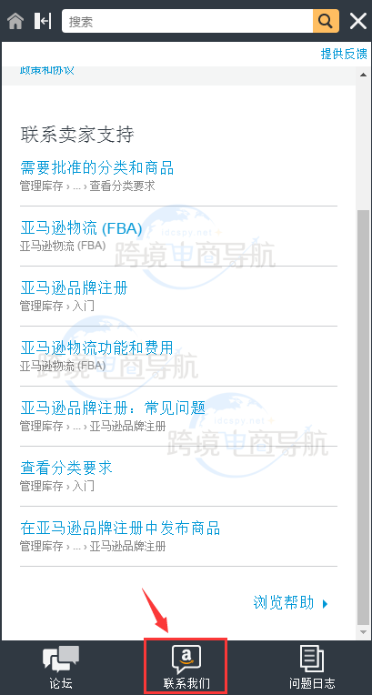 1. 亚马逊卖家后台页面右上方点击 帮助—联系我们