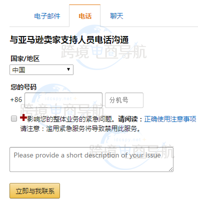 电话:留下电话号码,亚马逊会在工作时间回电话过来。