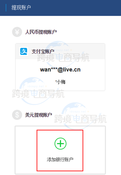 1)人民币收款账户需登录对应的支付宝账户(需绑定经过实名认证的国内支付宝)进行验证,登录成功即代表绑定成功。若后期需更换账户,后期可直接删除重新绑定新的账户。