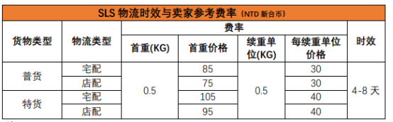 台湾地区跨境物流时效与卖家参考运费详见下表: