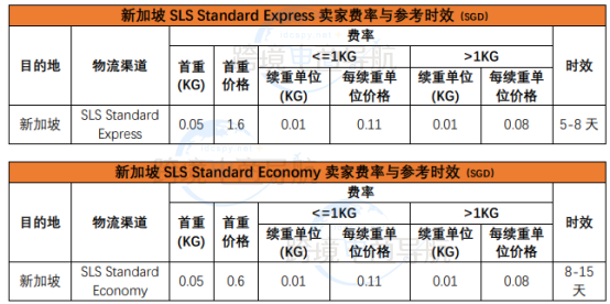 新加坡跨境物流卖家参考运费及时效详见下表: