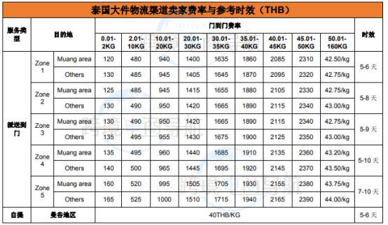泰国大件物流渠道卖家时效与参考运费见下表: