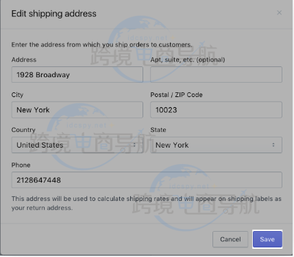 添加Shopify发货地址步骤:(iPhone和Android端)