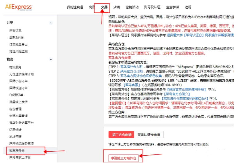 STEP 2:菜鸟认证仓订购,请根据页面提示完成“AE海外仓认证-商家报价”申请;