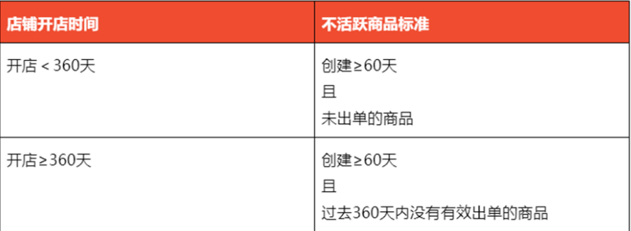 4. 若新店铺开店时间不足360天以开店天数作为标准,即在新店铺中已经创建超过60天及以上,且开店至今内没有有效出单的商品将被删除;