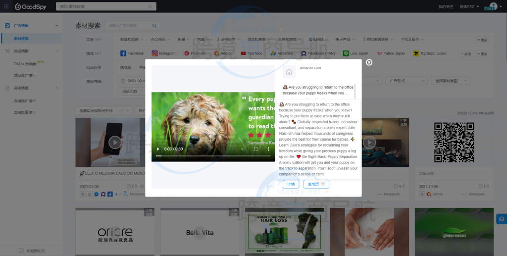 上GoodSpy,可以查看优秀的电商广告素材,参考他们的文案。撰写出符合自己产品的视频文案。