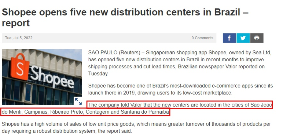 7月6日消息,路透社援引巴西报纸Valor周二报道,近几个月,跨境电商平台Shopee已在巴西开设了五个新的配送中心,以改善运输流程,并缩短交货时间。