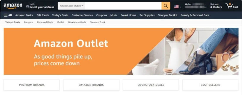 ① 奥特莱斯限时促销页面 (www.amazon.com/outlet)