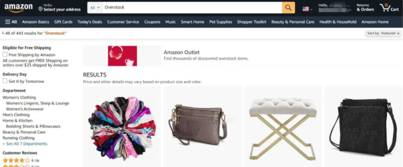 在搜索框搜索“Overstock”、“Outlet Store”等关键词。