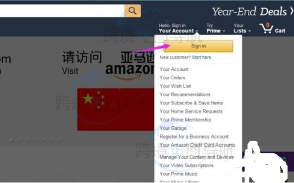 二、点击右上角的“your account”下拉菜单下的“sign in”进行登录,在登录页面输入你的账号和密码,点击“sign in”登录,如下图所示。