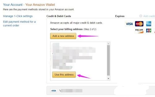 六、新添加的信用卡,点击上面这个箭头所指的”Add a new address“,即添加新的地址。
