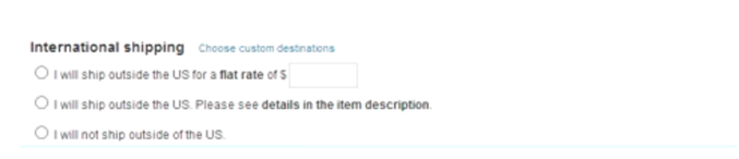 由上图可以看到,Bonanza卖家发货是有三种方式选择的,分别是以统一价格从美国境外发货、从美国境外发货以及美国境内发货。对于中国卖家来说,也就是说可以选择直发或者是海外仓发货。