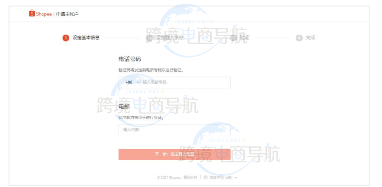 然后Shopee不能重复入驻有规定,所以邮箱和手机号都需要是没有注册过的。