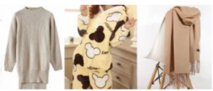 羊毛衫、围巾、开衫、家居服、休闲鞋履等