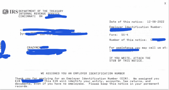 IRS发放的文件,里面有详细罗列你的企业名称、EIN码。