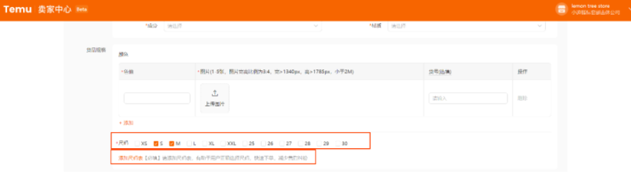 服装、鞋子相关类目没有添加尺码的,无法发布商品。