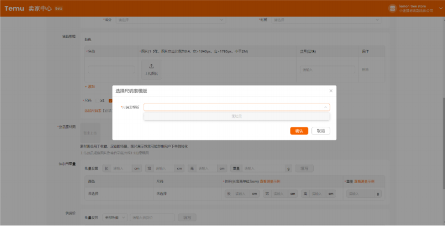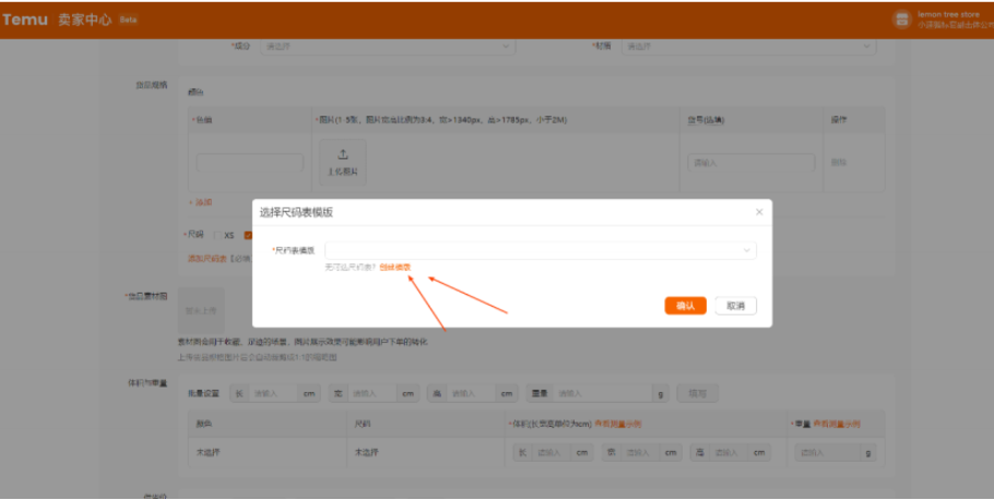 商家选择对应的尺码模板,如图此类型下没有配置模板;