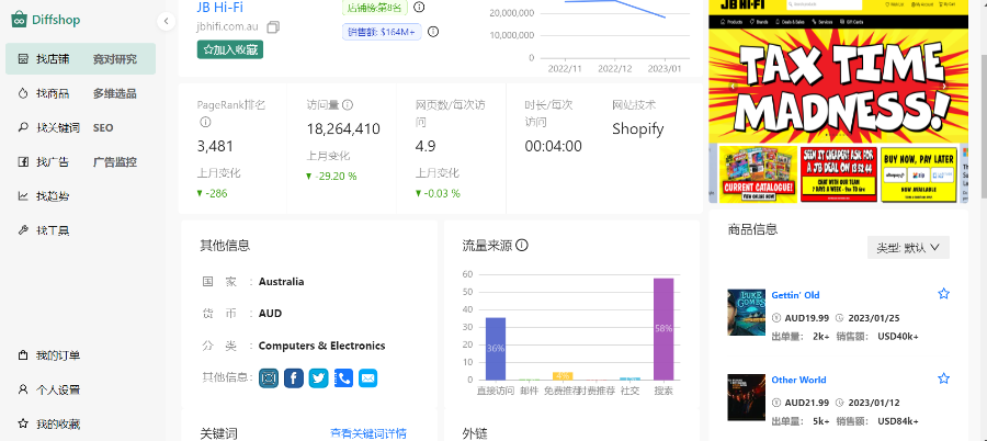 以上数据来源:Diffshop店湖独立站数据监控及选品工具