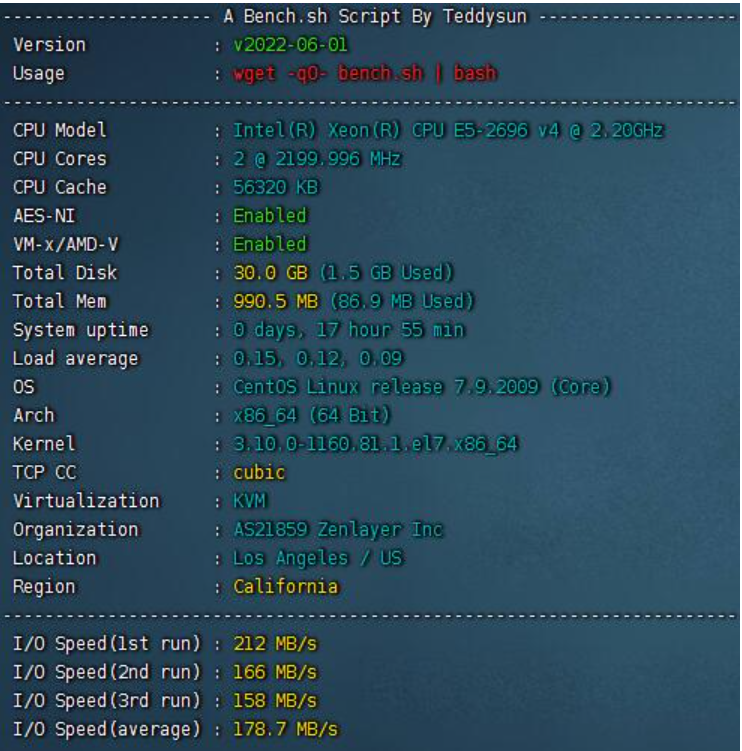 AS21859号段,Zenlayer数据中心;采用KVM虚拟化方式。