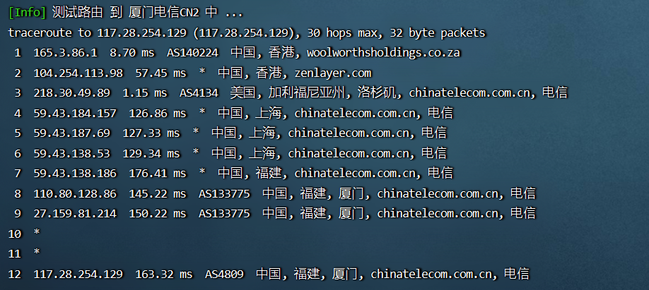 电信去程:cn2线路直连美国。