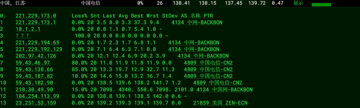 电信回程:cn2 gia线路直连回来。