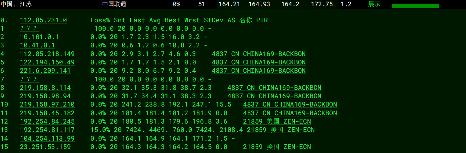 联通去程:走的联通骨干线路直连美国。