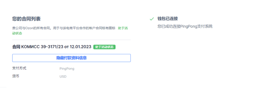 目前有部分卖家在OZON后台可以看到新的支付方式PingPong,连连支付不再是卖家唯一的选择,此前部分OZON卖家们担心收款慢、选择少、限制多等问题也可以得到进一步的解决,这对于目前很多正在做OZON平台卖家来说是这半年内听到最好的消息之一了。