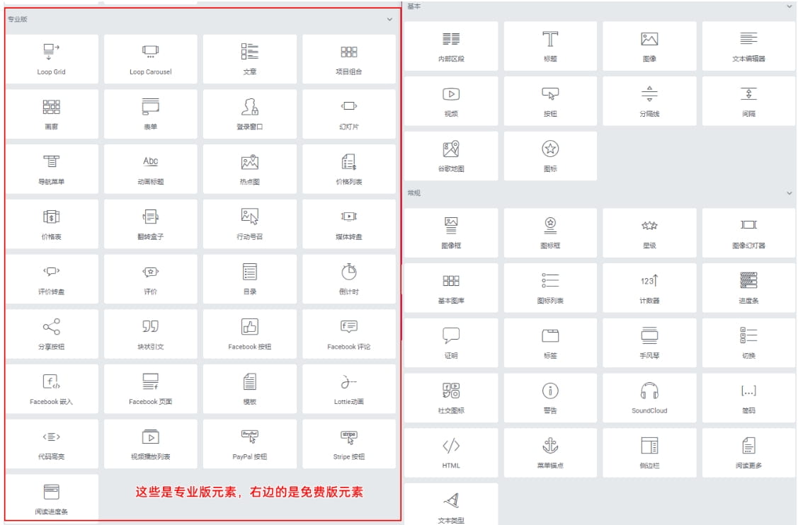 Elementor有两个版本:免费版和Pro版。免费版包含基本的功能和元素库,而Pro版则包含更多高级功能和元素库。