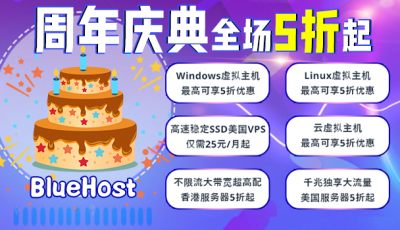 618购物狂欢节开始啦,而知名美国主机商BlueHost活动也在今天正式上线,,BlueHost虚拟主机、VPS主机以及...