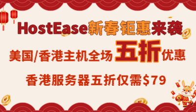 外贸主机新年大促:HostEase美国/香港主机全场低至五折