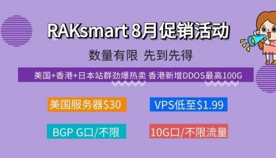 在如火如荼的八月,RAKsmart促销优惠活动开始啦,此次活动也为跨境电商用户带来惊喜,除了一些爆款服务器产品以外,还有...